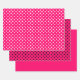 These wrapping paper sheet features one sheet that is pink with white polka dots, one sheet that is pink with black polka dots and one sheet that is all pink.