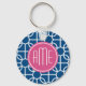 Hot Pink & Blue Geometric Pattern Monograms Key Ring
