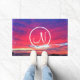 Hot pink blue sunset photo custom monogram modern doormat