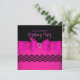 Hot Pink Bow Black Chevron Stripe Birthday Party Invitation