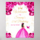 Hot Pink Brunette Hair Princess Birthday Welcome Poster