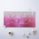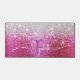 Hot Pink Brushed Metal Silver Glitter Monogram Desk Mat