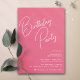 Modern minimal birthday invitations with "Birthday Party" in a handwritten style script font. White text on a bright pink background. Casual birthday party invites that can be changed to any age.
