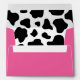 Cowgirl bachelorette party envelope in hot pink with a cow pattern liner. Hot pink cowgirl birthday party with a cow pattern liner.