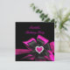 Hot Pink Diamond Heart Black Bow Birthday Party Invitation