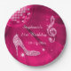 Women's personalised, elegant custom 21st birthday party celebration paper plates. Beautiful hot pink templates for a woman's 21st year old birthday. These plates have a funky retro disco mirror ball, glamourous printed image rhinestones / diamonds glitter, sequins, jewels sparkle high heels stilettos shoes, and glittery musical note / music note with sparkles on a classy hot pink with white lights and sparkles background. Chic, cute, girly, modern paper plates with trendy, fashionable colours. These cool, groovy, stylish, sophisticated, pretty party plates are decorated / printed on one side only. Perfect plates for dinner dance dancing event parties. PLEASE NOTE: All products on Zazzle have flat printed images. If you need any assistance customising your product please contact me through my store and I will be happy to help.
