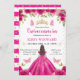 Hot Pink Dress Brunette Princess Quinceanera Invitation