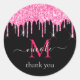 Hot Pink Dripping Glitter + Black Monogram Thank U Classic Round Sticker