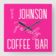 Hot Pink Family Name Square Wall Clock