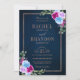 Hot Pink Floral Bronz Navy Blue Rustic Wedding Invitation