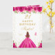 Hot Pink Floral Brown Hair Girl Happy Birthday Card