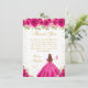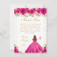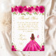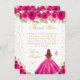 Hot Pink Floral Brown Hair Princess Sweet Sixteen Thank You Card