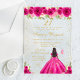 Hot Pink Floral Dark Skin Princess Birthday Party Acrylic Invitations