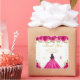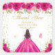 This elegant and glamourous sweet sixteen thank you sticker features a beautiful princess with dark hair and dark skin in a hot pink ball gown. The text combines handwritten script and modern sans serif fonts for a classy and sophisticated look. The floral arrangements, butterflies and gold confetti create the perfect blend of rustic and chic.