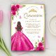 Hot Pink Floral Dress Butterfly Gold Quinceanera Invitation