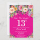Hot Pink Floral Surprise 13th Birthday Invitation