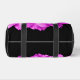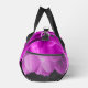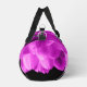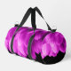 Hot pink flower petals on black duffle bag