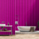 A hot pink fuchsia and dark raspberry violet red evenly spaced stripes repeat pattern wallpaper.