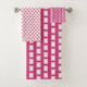 Hot Pink Geometric Pattern Stripes Bath Towel Set