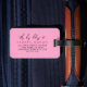 The back has a matching bright pink background with black fonts, featuring the phrase “This bag belongs to” in the same script style. Your name is highlighted in magenta, while the contact info appears in black using a mix of bold serif and script fonts for stylish contrast. All colours can be customised, so you can adjust the background, monogram, font, or text colour to suit your style. This personalised luggage tag makes a fun and practical gift for a girly girl, sorority sister, mum, or travel lover—perfect for birthdays, holidays, or just because.
