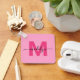 This sleek square keychain brings a modern and personalised touch to your everyday essentials. The design features a bold hot pink monogram initial centred on a solid black background, with your name in elegant white script layered across it. The same clean and stylish monogram design appears on both sides for a polished and girly black and pink look.