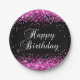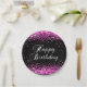 Hot Pink Glitter Black Happy Birthday Paper Plate