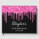 Hot Pink Glitter Drips Black 16th Birthday Guest Book