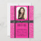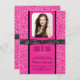 Pretty black and hot pink graduation announcement. This beautiful hot pink glitter graduation announcement is easily customised with your photo and event details in the font style and colour, and wording of your choice. You can also move or delete the ribbon on this elegant hot pink graduation announcement.