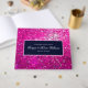 Simple modern elegant hot pink glitter texture print dark blue background for customisable wedding guest book template design.