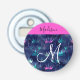Girly and glam shimmery hot pink, purple, aqua turquoise, green and blue glitter sparkles crowns/ tiaras mermaid princess monogram name and initial bottle opener. Your custom name is written in black with a hot pink background, and your custom monogram is written in white with an elegant hand lettered script. A perfect birthday or Christmas gift!