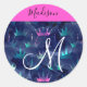 Hot Pink Glitter Sparkles Mermaid Crowns Monogram Classic Round Sticker