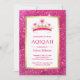 Hot Pink Glitter Tiara Princess Aqiqah Invitation