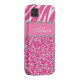 Hot Pink Glitter Zebra Print Rhinestone Girly Case