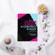 Retro wedding invitation with a cool 80s feel with bright colours and gold foil details. Your names in gold foil with hot pink and turquoise shadows. An asymmetrical design with fields of pink, turquoise, gold foil, and black. Eye catching and different for your 80s themed wedding.