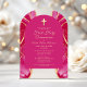 Hot Pink Gold Agate First Holy Communion Acrylic Invitations