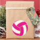 Hot Pink, Gold and White Volleyball Classic Round Sticker