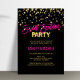 Throwing a sweet sixteen party? Need ideas? Get these modern and trendy custom templates so you can DIY easily. Hot pink with faux gold confetti with black and faux gold foil background. Affordable but not cheap looking. Personalise these invites for your next sweet 16 party.