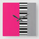 Hot Pink Grey Black and White Striped Block Square Wall Clock