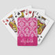 Hot Pink Grunge Damask Pattern Custom Text Playing Cards
