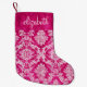 Hot Pink Grunge Damask Pattern Custom Text Small Christmas Stocking