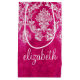 Hot Pink Grunge Damask Pattern Custom Text Small Gift Bag