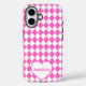 Hot Pink Harlequin Pattern Personalized Name Case-Mate iPhone Case
