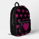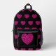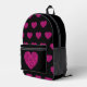 Hot pink heart faux glitter sparkles pattern black printed backpack