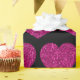 Hot pink heart faux glitter sparkles pattern black wrapping paper