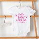 Hello, baby bodysuit. It is a custom bodysuit welcoming your newborn baby girl to this world. You'll customise the name of your baby and his DOB. The design is simple and beautiful, written in a hot pink, perfect for her. Don't hesitate to try the customisation today and make it yours. Thank you.