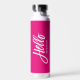 Hot Pink Hello Modern Simple Script with Your Name Water Bottle