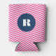 Hot Pink Herringbone Pattern Monogram Can Cooler