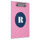 Modern and stylish monogram clipboard featuring hot pink herringbone pattern with navy blue round tag. This will be perfect as a personalised gift. This design is available in a variety of colours and products.