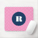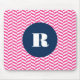 Modern and stylish monogram mouse pad featuring hot pink herringbone pattern with navy blue round tag. This will be perfect as a personalised gift. This design is available in a variety of colours and products.