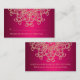 A beautiful jewel toned hot pink fuchsia and gold wedding or any special occasion table seating place card with an exotic Indian inspired ornamental sari like pattern with a lotus and floral sunburst design. This elegant and beautiful modern upscale and luxe Indian style place card is perfect for any formal occasion with an east asian indonesian moroccan arabian nights or aladdin theme. Design © Chrissy H. Studios, LLC. All Rights Reserved.